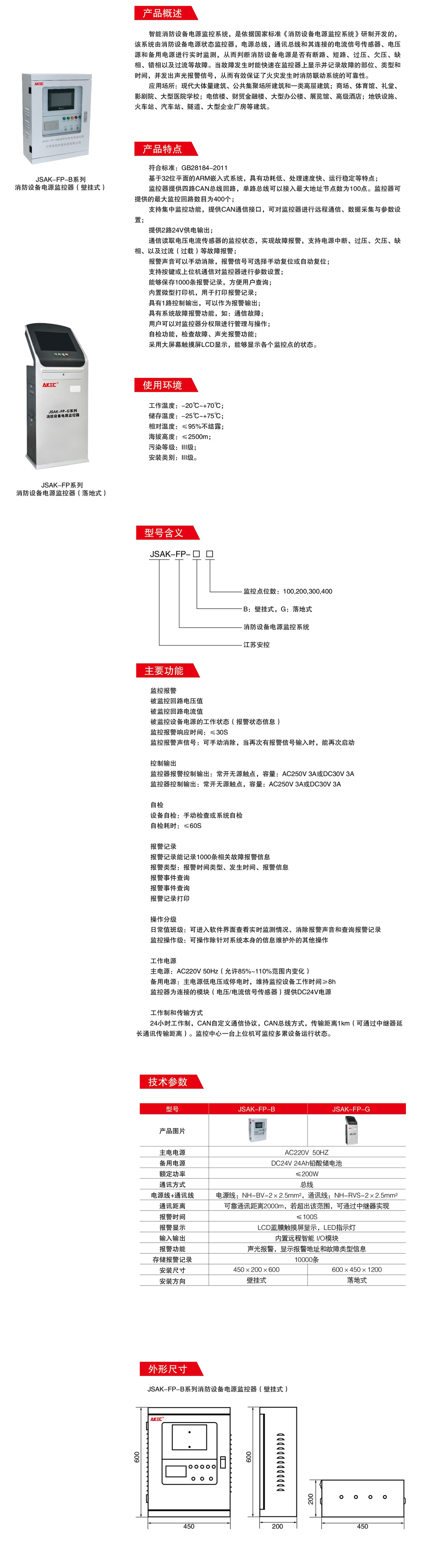 JSAK-FP-G 消防電源監(jiān)控器(落地式)